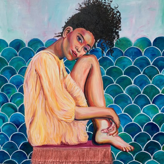 ‘Willow’ IMG_0730 ‘Willow’ Willow is based on a picture of Willow Smith that really inspired me, her pose was so introvert a perfect example of someone who is at peace in their own space. I wanted to focus on different paint textures and patterns. 130x90cm £1,320