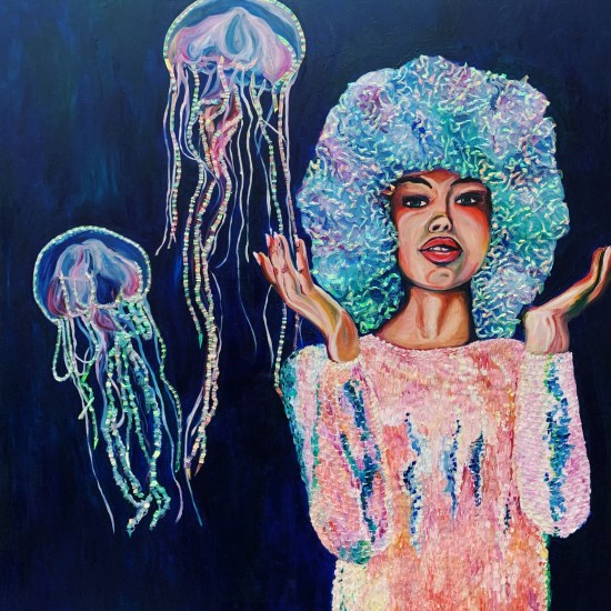 A modern day myth of an iridescent girl captivated with expressing her creative shimmer to the world. Unbeknownst to her the skins she shed an no longer needed made their way into the oceans 🌊 here they impersonated the most beautiful iridescent inhabitants, the jellyfish.