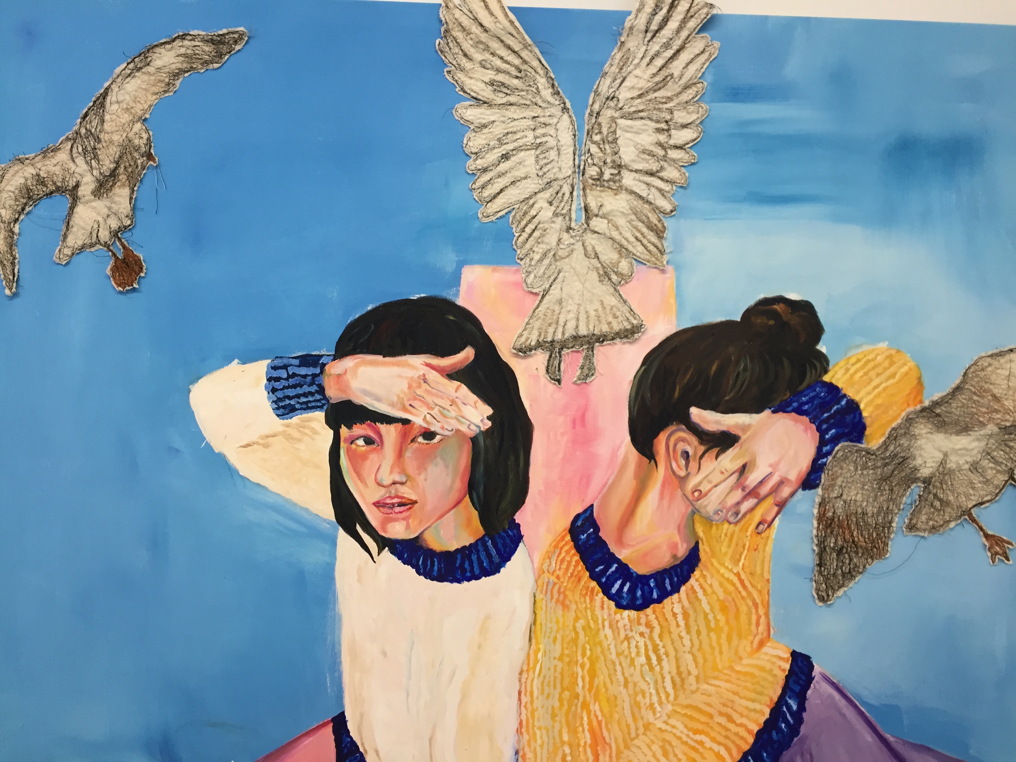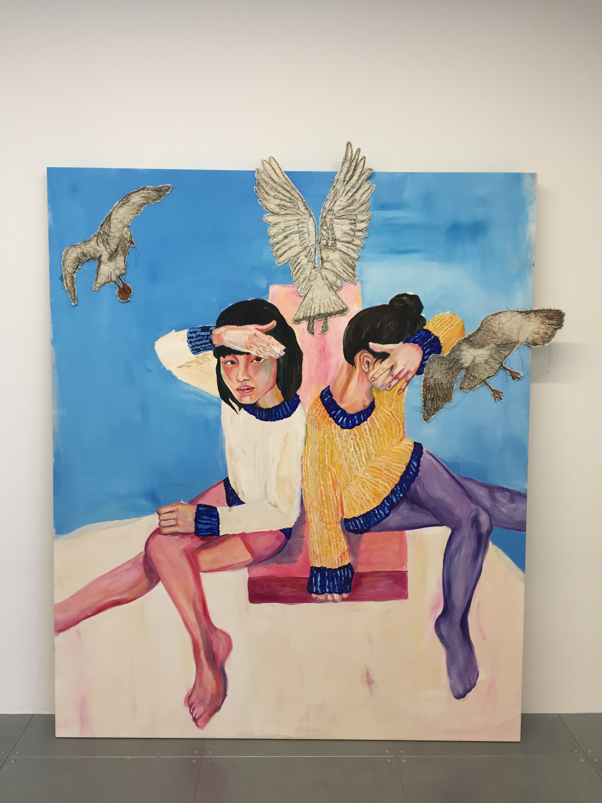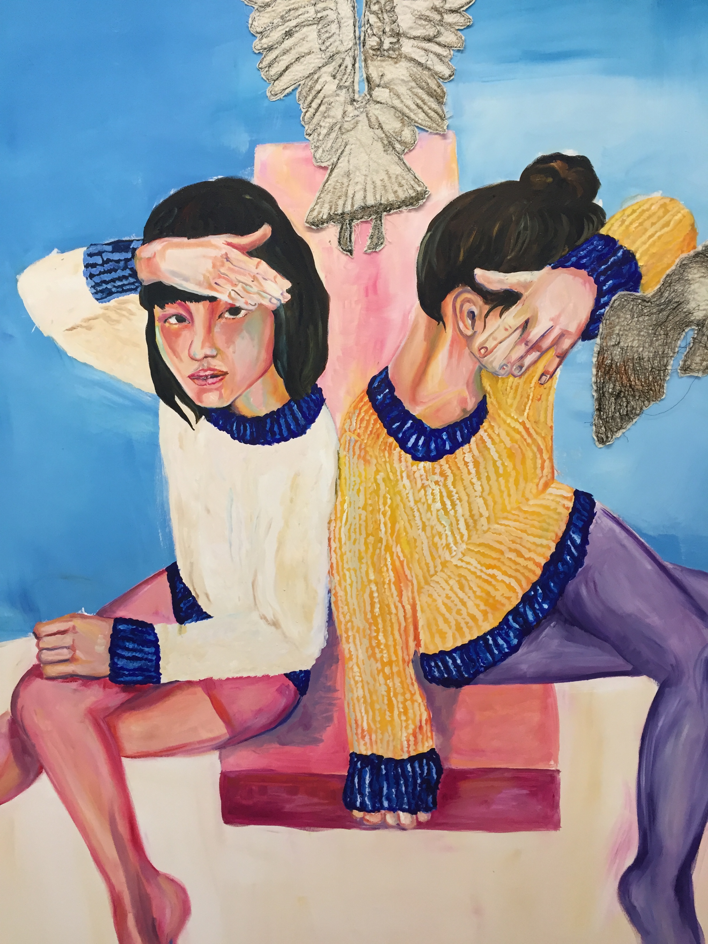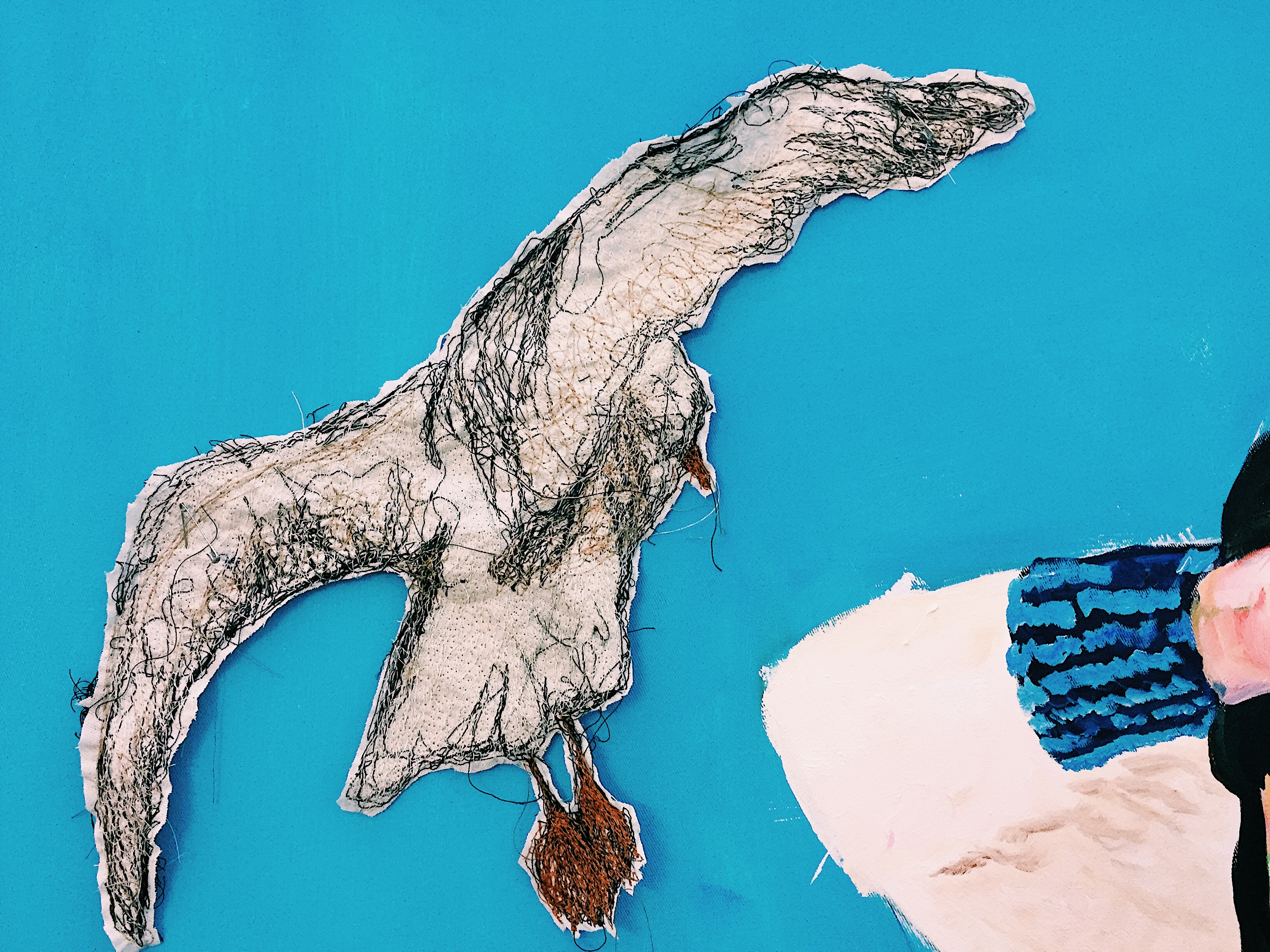 Oil painting and embroidery on canvas