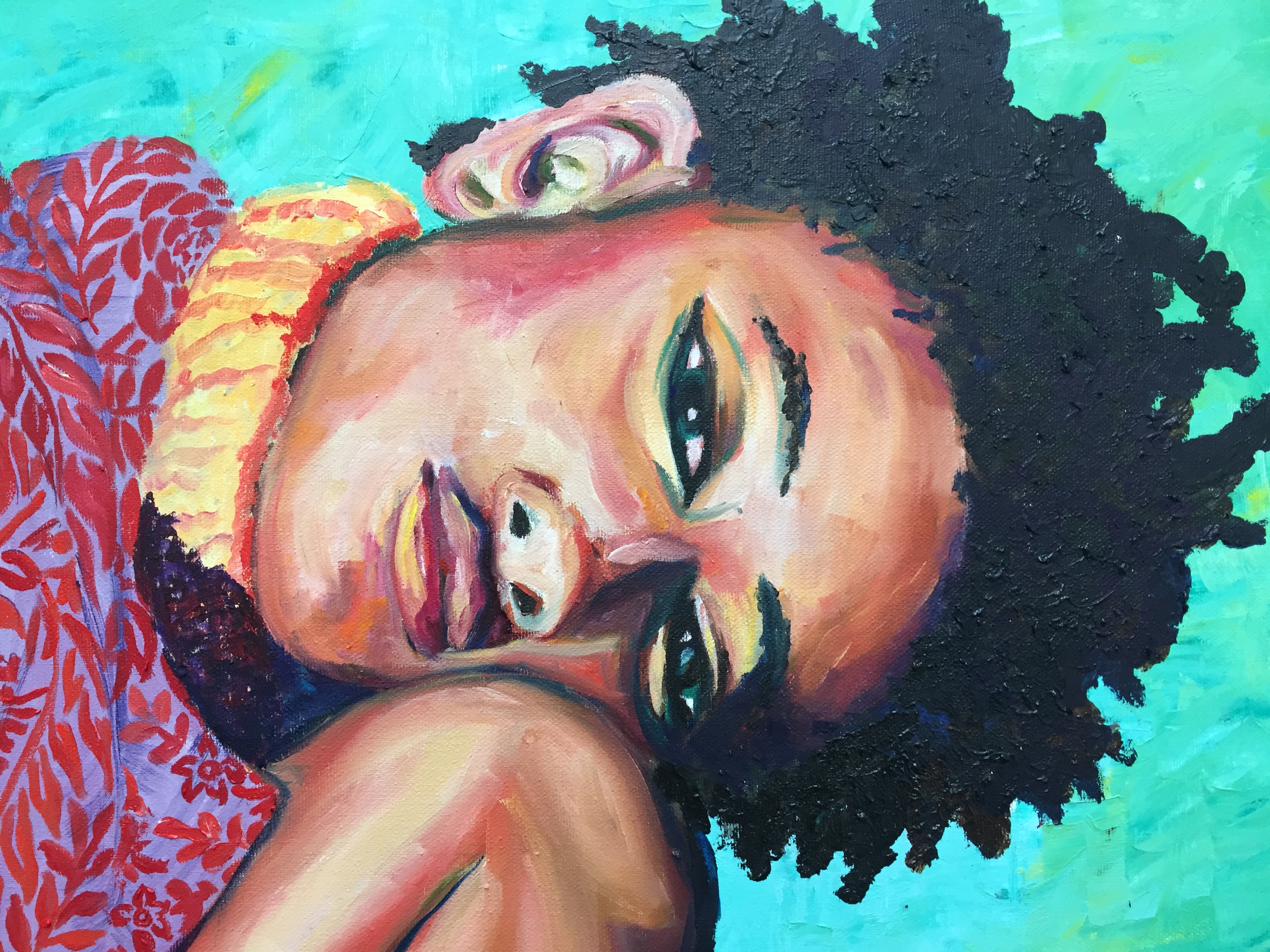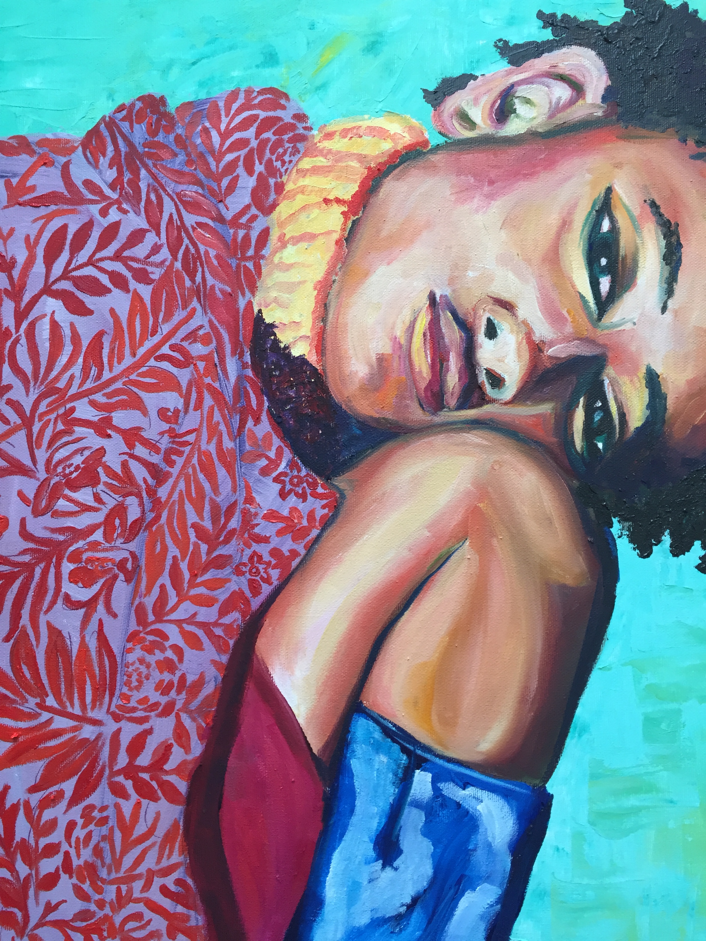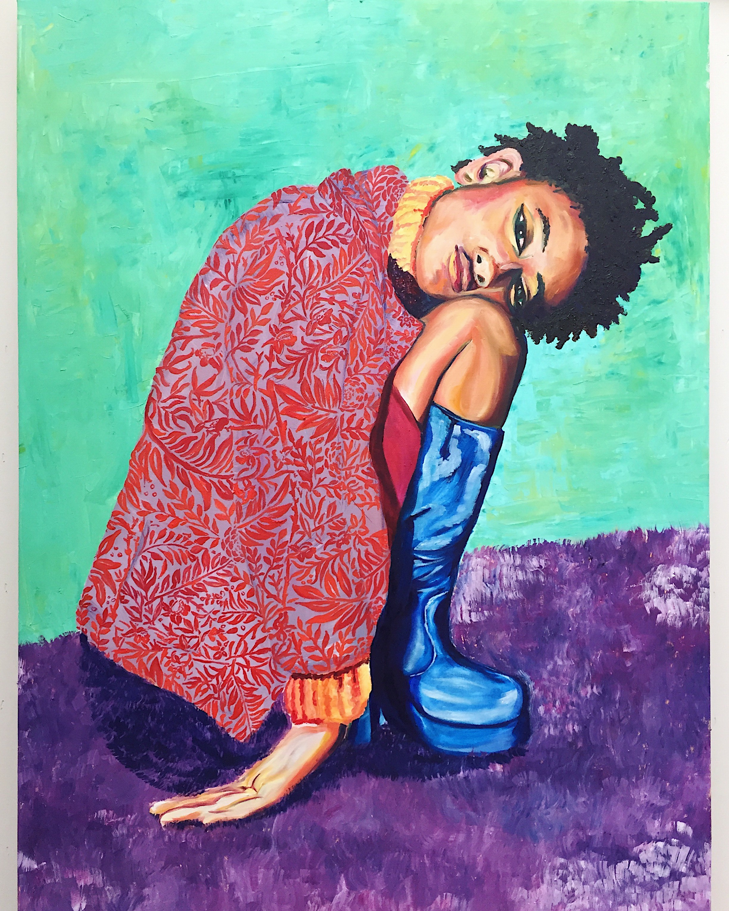 Willow is based on a picture of Willow Smith that really inspired me, her pose was so introvert a perfect example of someone who is at peace in their own space. I wanted to focus on different paint textures and patterns.